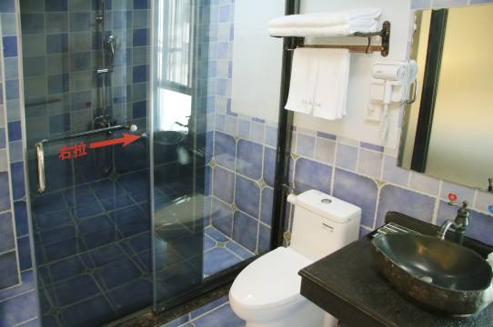 大半夜才到的,车子就停在酒店门口。房间还算大,进门就是大床,床上方有很大的圆形镜子,哈哈,有点不习惯。卫生间有点小,卫生干净。