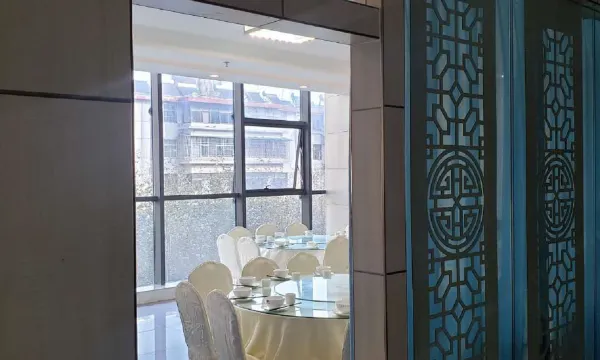 住1001房,视野开阔,朝东,南双面的蓝幕墙大落地窗,阳光充足。暖气温高可维持在26.5度。前台一定坚持要100元的押金!整体金黄木纹装修,地面也是,显得干净,亮!电梯间及卫生间的白色大理石很漂亮!卫生间有大推拉门!送被子客房服务员不知为何不是年轻的服务员,而是一个老大爷。由于出行计划变化,在退订2晚以后,当晚这个老大爷敲门,拿着新房卡问换房,奇怪没换房间啊!洗手的水滑滑的,有浴缸就太好了!此地太适合开发些温泉度假酒店了!电梯间里是足浴的大尺度广告,酒店大堂也是!酒店旁边是美发店,不远处是ktv。酒店大门口的地砖破损严重了,需要坡道,乱停的车需要清理一下!