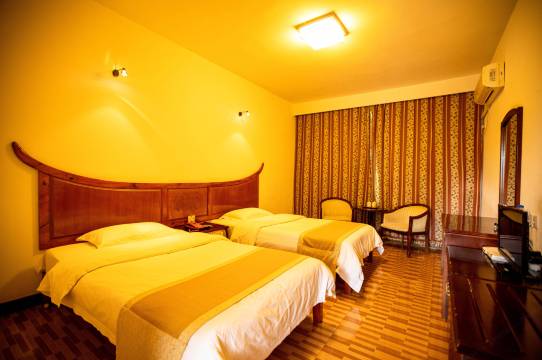 环境不错,很安静,床垫很舒适睡得很好,九皇山温差大酒店配备了电热毯,热水器的水温也高,不错,建议房间配上抽纸
