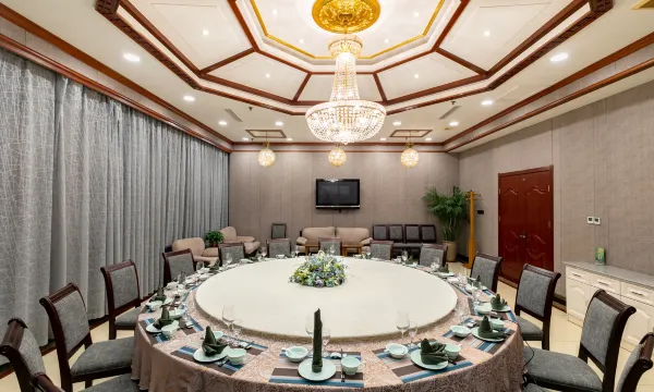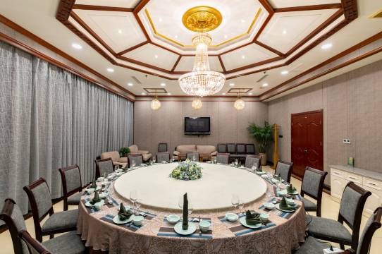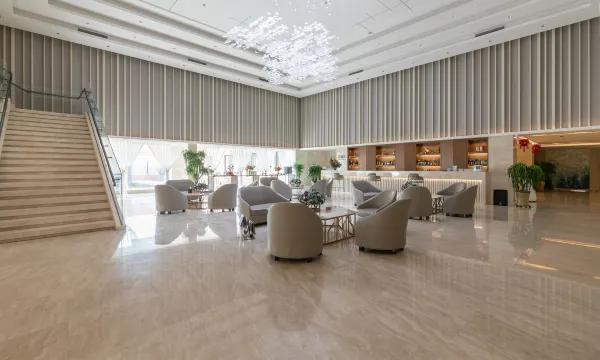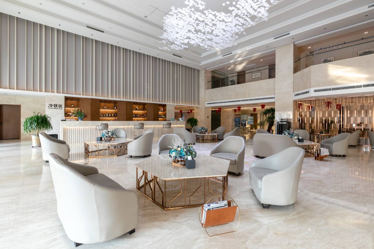 酒店的前厅很大,服务人员各就各位,彬彬有礼。入住时前台服务员热脸相迎,提示房间内水和饮料都是免费的,下午茶不错,房间卫生干净,床品舒适。晚餐在酒店用餐,菜品也不错,晚上九点用餐完闭由于都上了年纪想到棋牌室玩两个小时,(4小时168元))询问能便宜吗,遭到前台个子不高的小姐姐蔑视般的严词拒绝,呵呵,我想钟点房时间长短价格还不一样了,这个酒店还应人性化一点。早餐时遇到旅行团队,虽有噪杂,但服务员补餐食很及时,卫生间淋浴头很响,应清理一下。总结:停车方便,卫生干净,房间整洁,服务到位,午茶温馨,早餐丰盛。虽有不足,但扔应给与5星好评,下次还会入住,我们8人都很满意,祝酒店越办越好!
