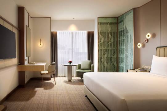 宽敞的客房和套房以暖色调装饰,配有木制家具和空调。每间客房都提供平板电视,部分客房享有城市景观。大理石独立浴室配有浴缸/淋浴设施和高档洗浴用品,给予您最舒适最尊贵的客房体验!