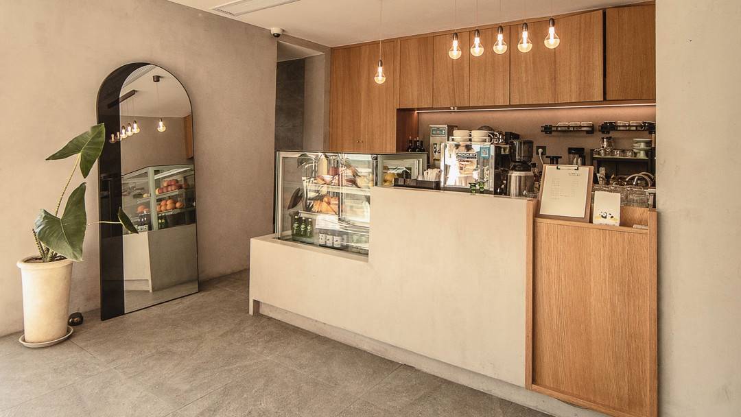 房间看出去满眼绿色,楼下咖啡馆空间通透。在这里喝一杯绿茶,正是地方。