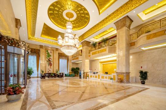 服务员热情,房间干净整洁舒适,房间吊顶是金色的,有特色,干湿分离,床舒服,酒店外观气派豪华,有地面停车场,能洗衣能烘干,早餐丰盛