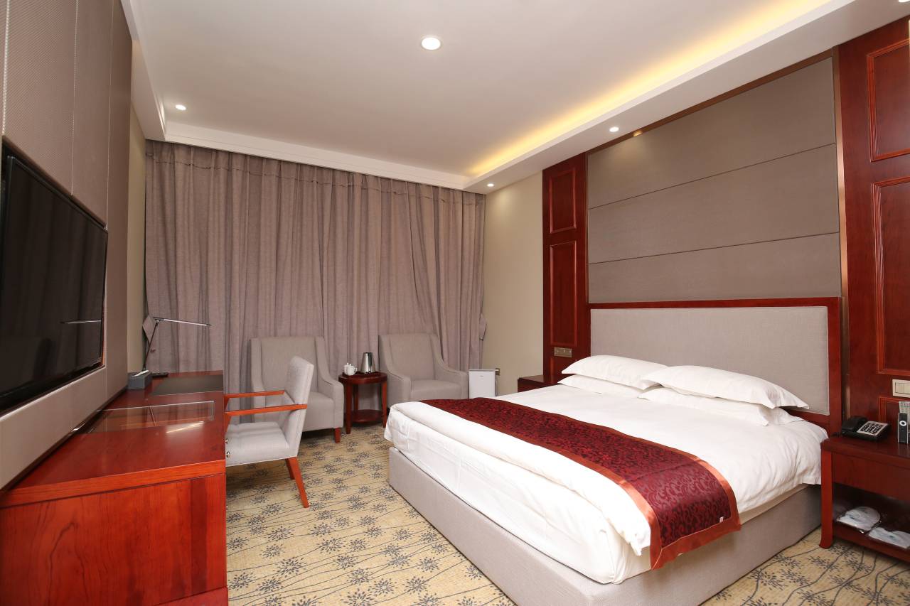 酒店客房独立WIFI高速上网,配备大功率空气净化器,洗护用品采用上市企业香港明辉集团产品;卫生间除雾镜面,套房智能马桶,镜面电视。