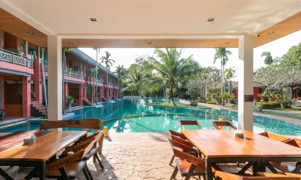 房间很干净,面积也很大,设施稍微有一点成就,但是可以接受,房间直通泳池,游泳非常方便,也不用锁门,随时回房间换衣服和取东西,方便的不行不行的,孔雀随时会在园区里游走,自然环境非常优越,园区离路边很近,非常安全,酒店可以租摩托车门口的摩托车店也可以租,300泰铢一天,出行就很方便了,去各个地方都很快。非常建议选择这个泳池直通房。好评好评