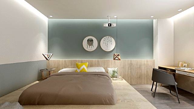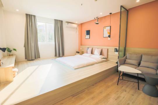 酒店空间灵动自如,76间趣味盒子,日式清新风、北欧极简风为主的装饰风格,客房配有极米智能投影、高速无线网络、书桌、沙发……为你提供私人观影、刷夜自习、佳侣相约、聚会轰趴的个性化空间。