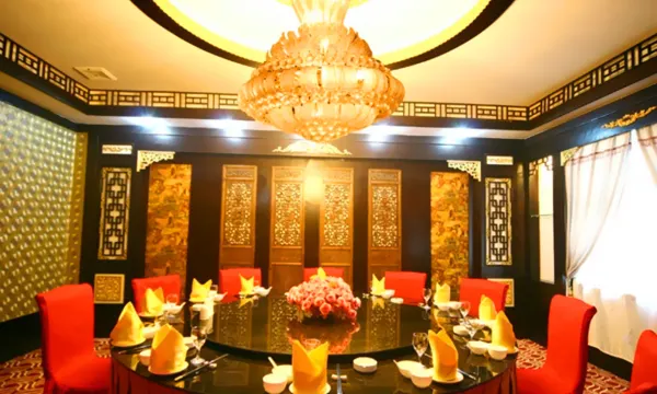 宾馆的餐厅配设包间,提供以营养健康为主题的各色菜式。宴会厅可供1200人同时就餐,是举行婚宴、大型会议用餐的理想场所。
