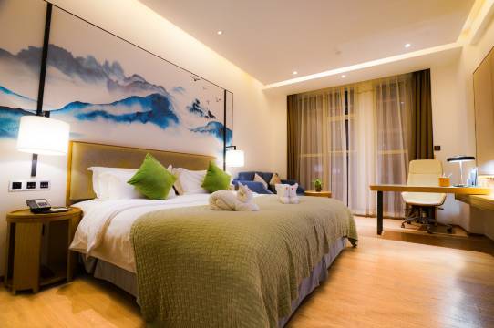 酒店位置很好,周边商店繁多,购物用餐方便,停车场大,车位充足,充电桩也多,住店停车免费。环境优雅,大气上档次。房间特别宽敞,卫生打扫干净,设施完善,使用正常,网速快,在房间办公一点不卡。床垫软硬合适,被子柔软,盖在身上舒服。管家服务用心,介绍各大景点游玩攻略,特别实用,有机会还会选择!