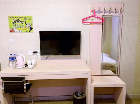 房间很新,楼道卫生也不错。洗漱用品都是一次性独立小包装,好用。里面还有桌子和椅子。房间打扫得很彻底,无死角无异味,床软硬度适中很舒服。前台办理入住速度快,服务贴心,周边吃饭逛街都方便,整体很满意,推荐给大家~