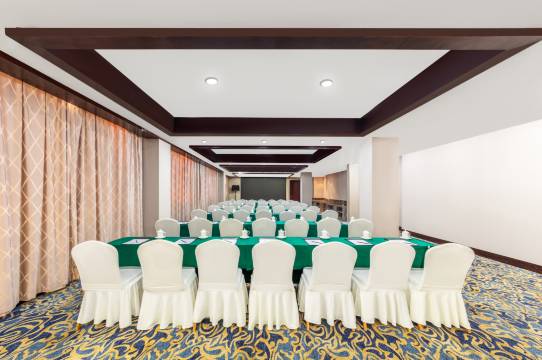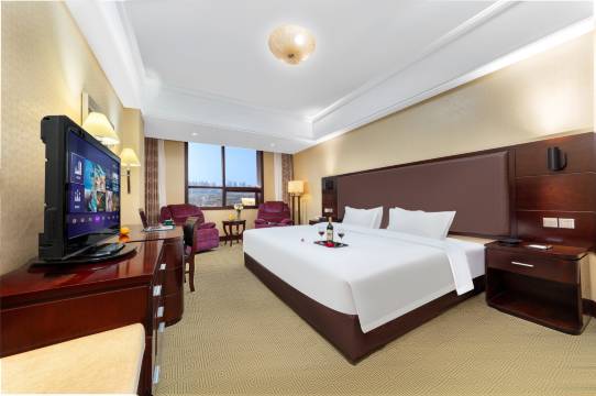 这是按照国际标准投资兴建的综合性现代化国际酒店,建筑面积六万五干平方米,拥有可同时容纳300人的多功能厅2个,大小会议室8个,豪华餐饮包间34个。拥有各类客房,每间客房装饰豪华,舒适温馨,设施配备齐全,设有卫星电视、国际长途电话和光纤接口以及24小时客房服务。酒店是省政府定点接待单位,客房洗浴水为天然温泉水,免费提供高铁站接送服务。满足了现代宾客更高层次和多元化的住宿需求。