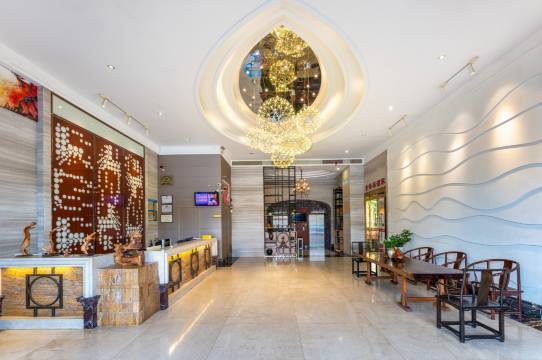 酒店大堂蛮大,干净整洁,前台服务态度也挺好的,旁边都是吃的。很多大排档什么的。有免费的停车场,出去的时候到前台扫码就可以直接开走了。酒店是老酒店了,装修不是很新,但是空间蛮大的,空气很流通,不会像有些酒店有异味或者太潮湿的那种,阿姨卫生做的很清爽干净,房间还配有茶具,这就是广东潮汕人比较喜欢的。走哪都要喝茶[破涕为笑]整体还不错。