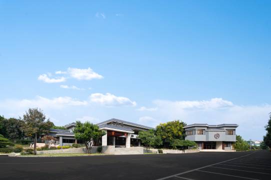 山庄依山建造,是一组集中国古典风格、欧式风格、时代气息为一体的园林式建筑群。由7栋独立建筑组成,占地170余亩,总建筑面积46000平方米。