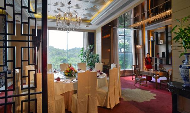 酒店停车场有充电桩,老公最在乎这个。周围环境很美,有个大大的湖。今天天气很冷,前台巧梅姐姐笑容很暖,还主动奉上热腾腾的茶,客房景观一流,窗外美美的,房间干净舒适,毛巾是独立打包的,还配套了漱口水消毒巾这些人性化的日常用品。早餐的出品也很不错,酒店还有养生馆、ktv、中歺厅(中午还可以喝茶,出品还很正,能吃的出不是深圳的那些预制品),还有健身房(老公说这家酒店的健身房是少有的设备齐全,我也不懂),住这里,吃、喝、玩、乐全安排上了,省心[强]值得推荐[强][强][强]
