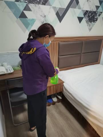 房间卫生非常干净,离高铁站很近,10分钟就到了,楼下吃饭也方便。