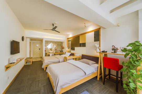 房间布局摆设很有格调很喜卫生很干净,洗澡很舒服,床睡着也舒服。房间面积很大很宽敞。设施很完善,特别完备。