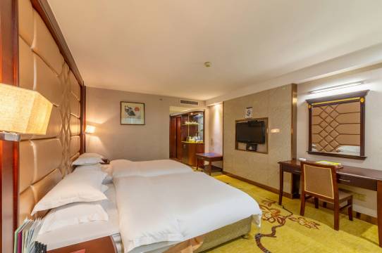 房间很大很高很宽敞,酒店虽然比较有年代感,但还是可以看出昔日辉煌。周边配套设施齐全,有美食街,零食铺奶茶铺,还有肯德基,金店,总的来说性价比很高。住峡山不错的选择👍