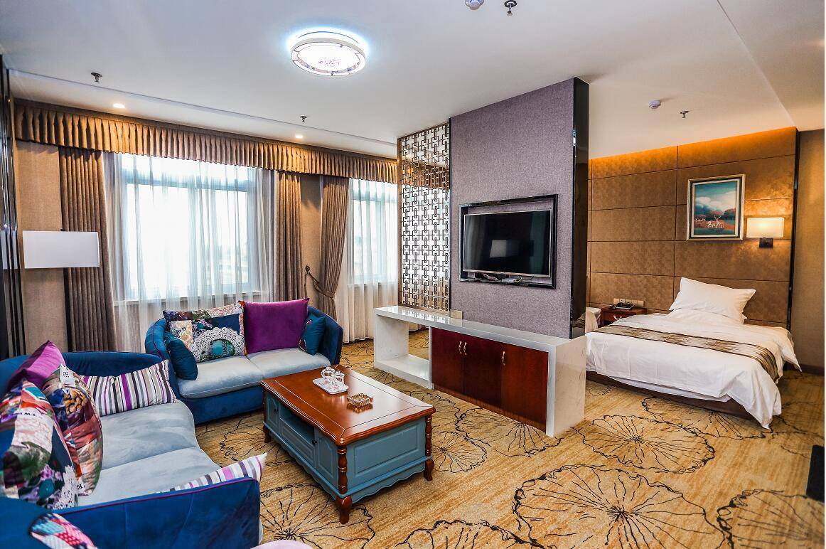 酒店装修豪华精美,房内设施设备齐全配有中央空调、地暖、自动纯净水、32寸液晶高清网络电视,千兆光纤网络。
