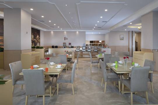 酒店大堂高端大气,空间大,配套齐全,有本地特色的海鲜酒楼,前台小哥服务特别热情❤,主动提供问询服务,酒店大堂有贴本地旅游攻略,特别方便,房间维也纳装修风格,智能化,方便快捷,[强]早餐也很好,有本地特色牛腩面,炖盅[庆祝]