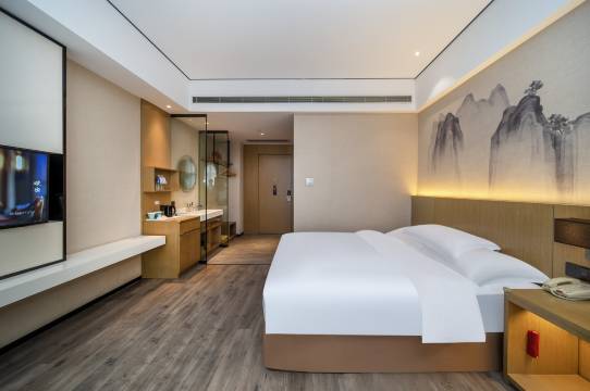 这次入住体验很棒,客房宽敞明亮,布置的温馨雅致,床品舒适柔软,房间也比较隔音,一夜好眠。卫生细节之处做的也很干净,非常满意