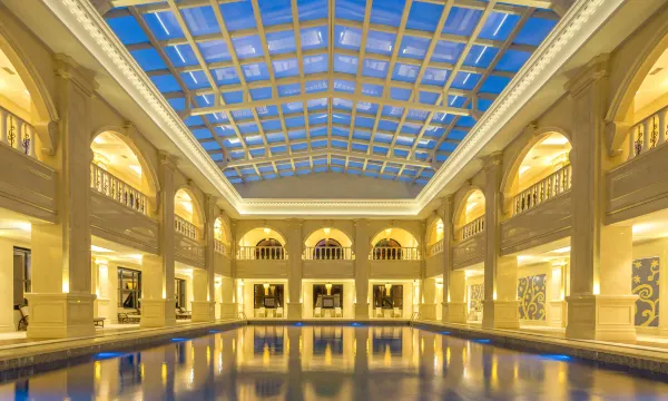 浦江仙华檀宫国际度假酒店是当地豪华型度假标杆,坐落于4A级仙华山风景区森林中,负氧离子浓度高,环境清幽。酒店为欧式巴洛克风格,拥有200余间豪华客房,配套室内恒温泳池、温泉水乐园、健身中心、Spa等设施,已是第二次入住,体验好!