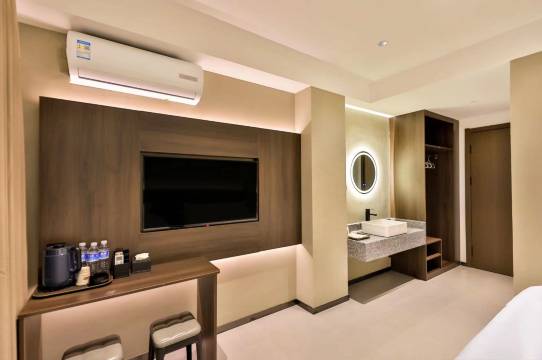卫生:设施主打 “实用不冗余”,完全满足出行刚需。房间里的床品支撑性很好;空调制冷快且静音; 充电口就在在床头,手机充电超方便,没有花里胡哨的设计,每样设施都用得顺手。
