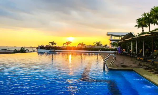 酒店位置很不错,可以远眺马六甲海峡,但出门就是高速,过马路需要绕行一段。酒店里没有儿童乐园,有健身房和泳池,早餐不错,隔音也不错,会有旅行团入住,离景点步行可到!客房服务人员很好,饮用水给的有点少。