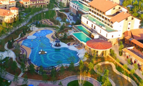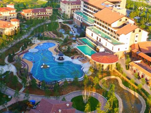 酒店是一座6万平米的岛式温泉度假酒店,由13栋别墅簇拥,欧式建筑风格与咫尺间的大海交相辉映,呈现宁静平和的气氛。