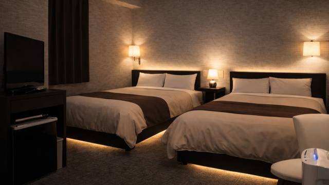 酒店位置靠近车站,周边生活便利。前台工作人员非常热情周到。双床间非常适合两位成人和一个孩子入住。