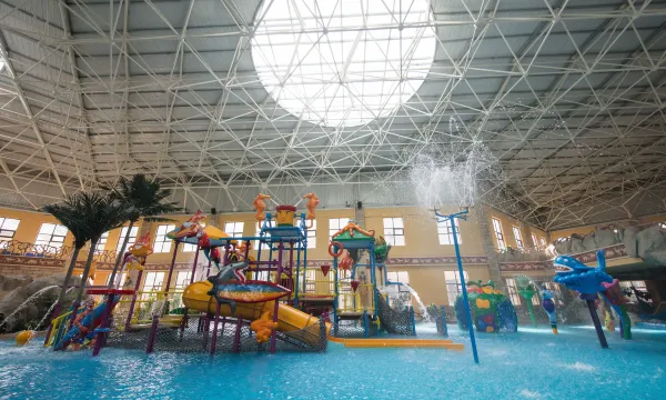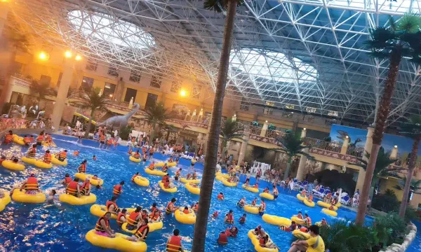 设施:酒店内吃喝玩乐一条龙服务,特别是有室内的水上乐园和户外的特色温泉,简直就是冬天玩水泡汤的好去处。也适合带小朋友的家庭来度假过周末。