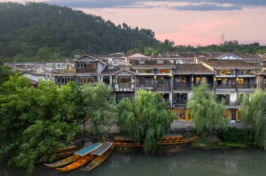 在云桥的光影里,这栋徽派建筑静静矗立,飞檐吊脚倒映在沱江河的桨声灯影里,极具人文气息。民宿临河房间拥有独立阳台,所有装饰主题都与“云”字完美契合。