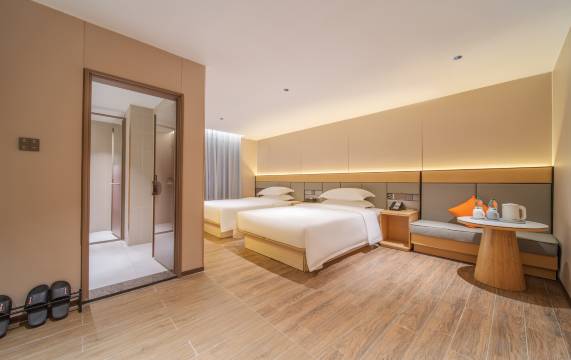 前台小妹服务特别热情,不仅快速办好入住,还主动升级了高楼层的房型,送了两个小盲盒,细节直接拉满 。房间打扫得一尘不染,床品柔软得像云朵,晚上隔音效果很好,睡得格外踏实。浴室水量很足,热水温度够热,舒服!洗漱用品也很清爽,连床头的USB充电口都设计得很贴心。赞!