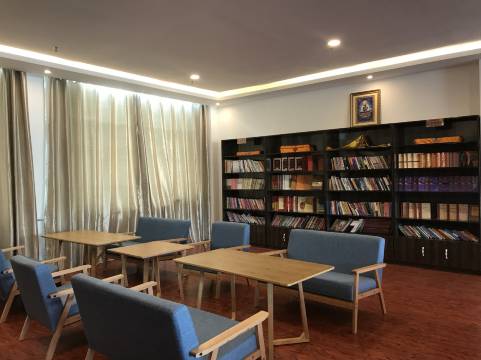 酒店集休闲娱乐、餐饮、住宿、茶艺、健身、阅读、展览于一体的综合大楼,拥有可供二百人同时用餐的餐厅和一百多张床位,以及图书阅览室和藏族传统文化展览厅,大楼顶层为二十一尊度母佛堂。以此为基础,酒店邀请甘肃拉卜楞寺毛兰加措大师书法传承者桑杰扎西先生以不同的字体书写仓央嘉措道歌百余首,收藏作为文化综合大楼的镇楼之宝。