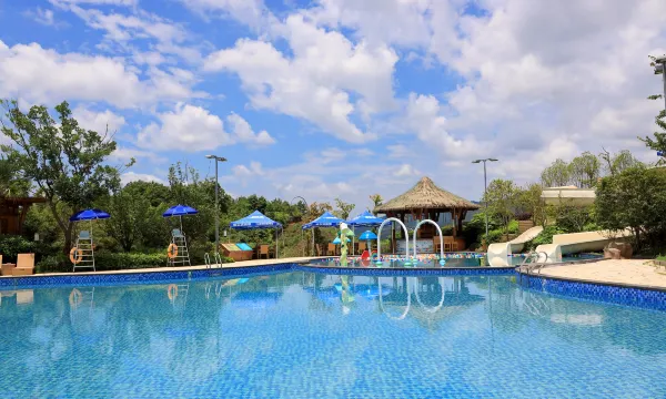 酒店在山水秘境中,环境优美,空气清新,这里的天气温度要比城市低好几度,夏天来这里度假还是不错的选择。而且温泉区设有儿童戏水区,游泳池,二楼休息厅还提供休息区 ,电影院,儿童游乐区。还可以点小吃。