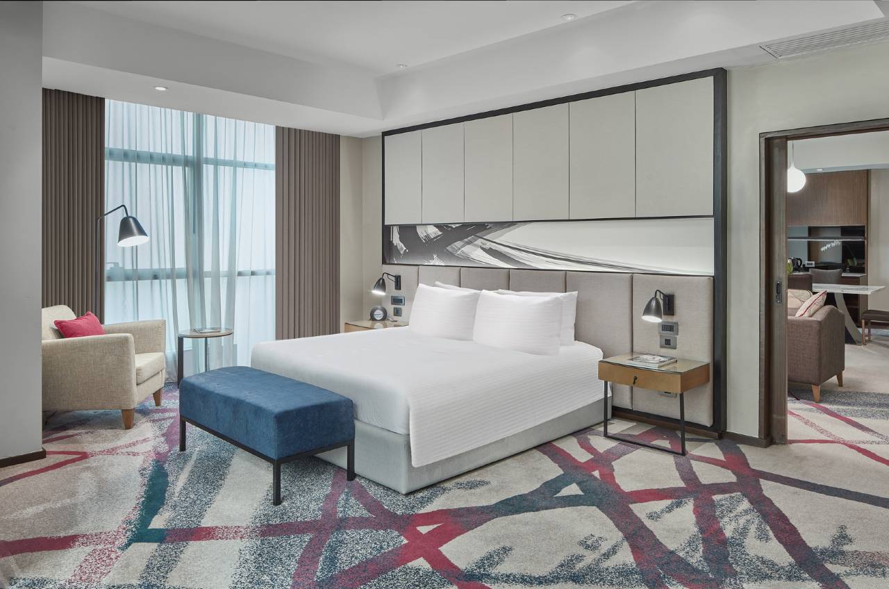 有 262 间特色装修的客房提供冰箱和迷你吧;您定能在旅途中找到家的舒适。您的加厚层卧床备有高档床上用品。带有有线频道的 42 英寸LED 电视可满足您的娱乐需求;同时提供免费无线网络,方便您与朋友保持联系。私人浴室提供免费洗浴用品和坐浴桶。