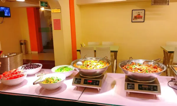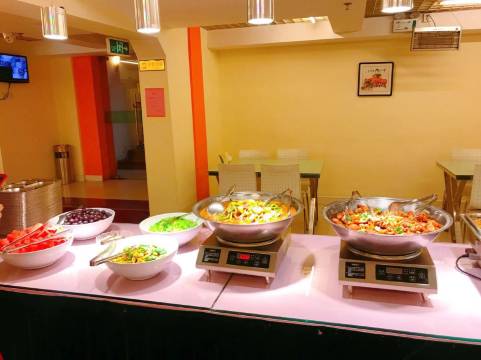 住了三天两晚,今天中午赶回来,突然想到还没吃一顿和家宾馆的餐食呢,总得尝尝一顿,前台购买2张票70元,说在负一层,从电梯旁小门直接下去走错门了,回不去了😁,一位好心的保安大爷看到给带路从厨房门进来的,再次感谢哇,餐厅很温馨,菜品还不少,干净卫生,绝对的实惠、好吃不贵,超乎我们的想象。早知道是这样的档次,我们也不吃三天麦当劳、必胜客或点肯德基外卖了。