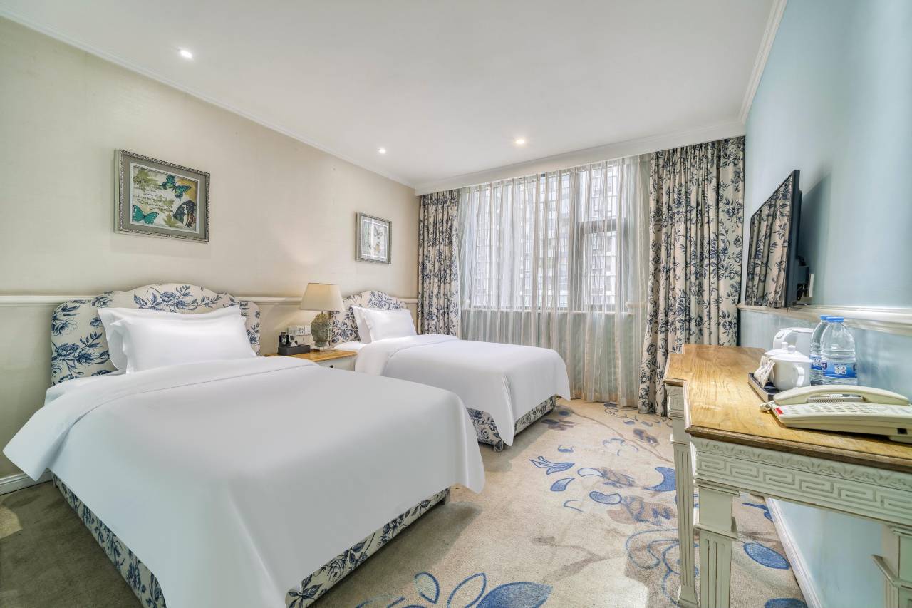 对酒店房间很满意 价格适中也不贵 性价比比较高 房间的空间也很大 住了两次了 下次也是还会来的 而且酒店临近地铁口 周围交通或者是吃的都很便利 超级喜欢的 推荐推荐哦 小姐姐服务态度也非常好 说话温温柔柔的 长的也很乖嘿嘿 夹带私货了 哦对了 还有早餐 也丰盛