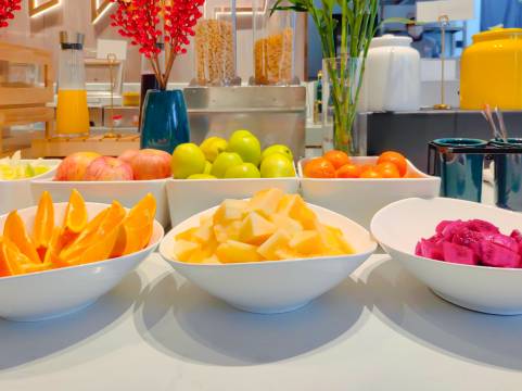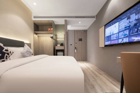 真心推荐这家酒店,房间干净舒适,智能设备好用,小度语音直接控制窗帘、电视、灯光什么的都很方便。房间还有小冰箱,茶包矿泉水小零食都非常齐全。早餐丰盛好吃,尝试了武汉热干面、还有面窝都很有特色 品种选择超多。洗衣房健身房齐全,还有哄干机很方便,前台小李服务贴心周到,还提前给我安排好房间。免费饮品零食充足,下次一定还住。