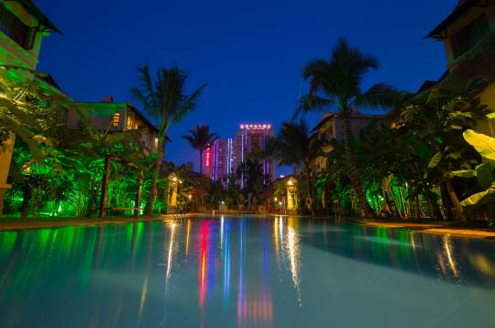 酒店占地十余亩,呈花园式布局,店内种植有棕榈树、各类水果树及奇花异草,绿化面积达百分之六十以上。别出心裁的欧式别墅小楼掩映其中,若隐若现,如梦如幻。进入酒店,处处鸟语花香,遍地绿草成茵,真是人在画中游,画在你心中。酒店房间装修豪华、舒适,是您休闲度假的理想选择,能让您倍感居城中而不喧闹之惬意,凭窗远眺婀娜多情的澜沧江下游湄河、多姿多彩的热带雨林景观、真正让您感受到雨林西双版纳、柔情傣乡的纯美之情。