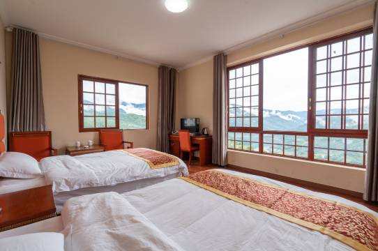 酒店位置感觉是附近最好的,我们定的普通房,到了就果断升级观景房反正也没差多少!酒店有个公共观景茶室,我们来的时候正碰上下阵雨,雨停后刚好能看到云海飘上来,真的!比附近好几百的划算很多好吗!本来到这个地方就是来看风景的,种草了这个观景茶室