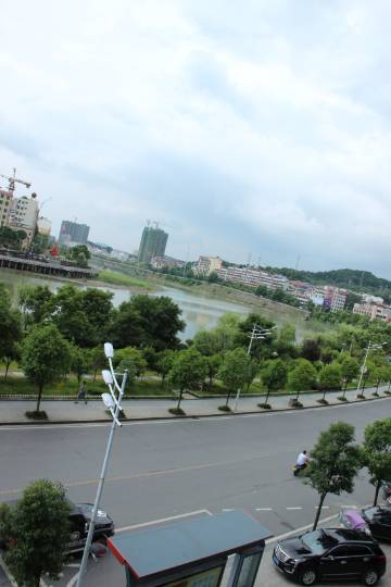 酒店位于河边,门口可停车。免费给我们升级了房间,卫生条件还可以,设施完备,就是有点老化。早餐不错,还有现场制作米粉,热干面。