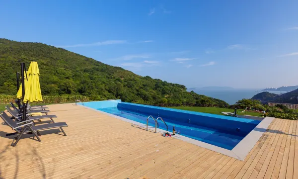 环境很美的山间石头别墅,有小院,石子路,出小院到处都是绿植大自然,好美。设施都很好,白天去无边泳池游泳,能看到大海,很美。晚上在酒吧唱K,打台球,太舒服了。可惜的是遇到台风,景区关闭,近在咫尺的珍珠滩就是下不去。。。不过这不影响酒店带给我的美感。