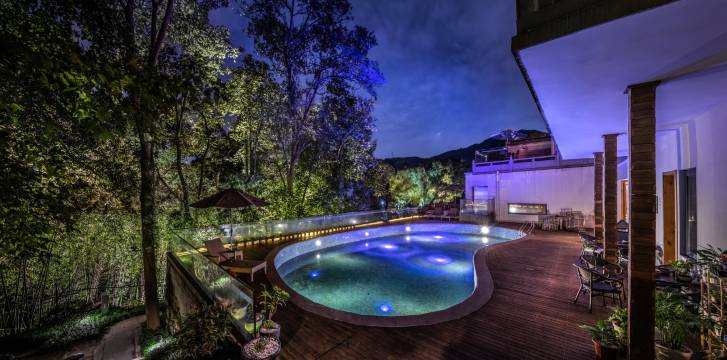 整体项目占地2万平米,建筑面积3000平米,由1座民国官邸旧宅改造而来,精心打造22个私人汤池,或室内或室外,三十余间匠心雕琢生态客房,46只岁月洗炼的古董,打造深藏九溪的世外桃源,并拥有小型会议室,高山观景餐厅,户外阳光泳池等设施。