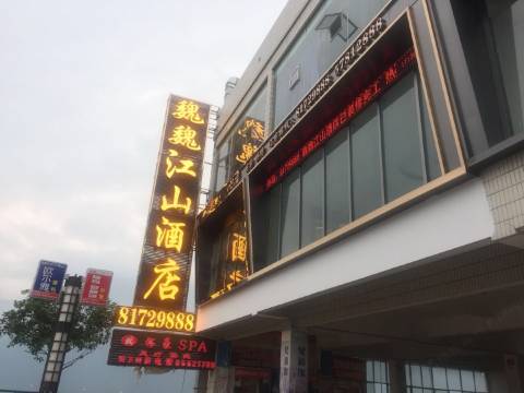 本酒店是一家高档商务酒店,装修时尚高雅,设施齐全,环境舒适。酒店以(宾客至上,服务)为经营宗旨,采用了科学的经营机制和管理方法,不断追求卓越,附近有美食街,美容美发,连锁超市和足浴中心等,交通方便。魏魏江山酒店恭候您的光临!