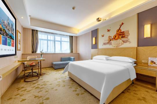 房间比图片看起来更宽敞,陈设简约却不失质感,尤其是床品特别舒服,床垫软硬适中,盖毯的材质摸起来像云朵一样软乎乎的,加上隔音做得好,一整夜都睡得很沉。卫生间是干湿分离的设计,热水出得快且稳定,洗漱用品的香味很清新,不是那种廉价的工业香精味。