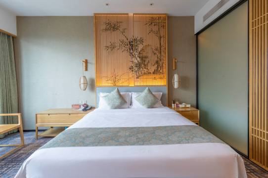 酒店地理位置好,出行方便 环境舒适,房间是落地窗 太阳晒进来好暖和很惬意,房间设计简约大气,竹艺风格 床上用品洗漱用品质感高,细节用心,卫生干净整洁 前台小彭热情周到 提供贴心服务,价格合理 还送了欢迎水果!