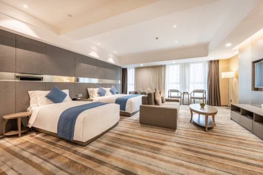 酒店房间环境安静,隔音不错,睡得很舒服,完全没有被打扰。前台服务热情周到,办理入住和退房都很快,有问题也能及时解决。
