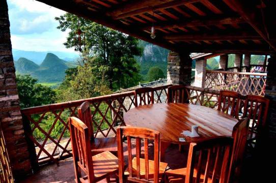 我们客栈是集食宿一体的瑶家小栈。有自家养的瑶家走地鸡,自家种的农家小菜,客栈旁有个观景阳台餐厅,欢迎您莅临品尝瑶家菜,团建亲友聚会不二之选!