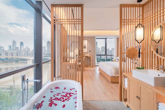 我在这家酒店住了一晚,体验非常棒!房间内的浴缸让我在疲惫的旅途中得到了放松。江景房间的视野开阔,能远眺洪崖洞的夜景,美不胜收。服务也很周到,让人感觉宾至如归。总体而言,这是一家值得推荐的酒店,特别适合想要享受美景和舒适环境的旅客。强烈推荐!