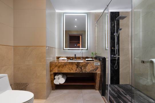 酒店房间的整洁度无可挑剔——床单、毛巾都洁白干净,地毯和家具一尘不染,浴室镜面、台面都擦得锃亮,连角落都没有积灰,看得出打扫得非常细致。每天客房服务都很及时,补充的洗漱用品、矿泉水等都很充足。 特别喜欢房间的收纳设计衣柜、抽屉、行李架都很实用,让整个空间保持井然有序。隔音效果也很好,完全听不到走廊或隔壁的噪音,能安静地休息或办公。