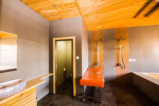 水岸阳光温泉会馆位于双台镇思拉堡温泉小镇,2011年开始正式营业,拥有客房80多间。设有标准间,三人间,四人间,家庭房,套房,木屋,洗浴客房等10余种房型。是集餐饮、洗浴、住宿、会议、SPA、理疗于一体的综合性温泉会所。
